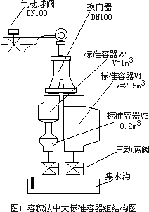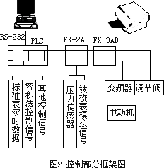 摘 要:為提高標(biāo)定的精確度和標(biāo)定效率擴(kuò)大標(biāo)定系統(tǒng)適用范圍,減少人為因素帶來(lái)的誤差設(shè)計(jì)了這套流量計(jì)標(biāo)定系統(tǒng)。本系統(tǒng)以標(biāo)準(zhǔn)表法和容積法為主秤重法為輔。采用變頻調(diào)節(jié)技術(shù)由PLC、變頻器和計(jì)算機(jī)進(jìn)行精密控制和調(diào)節(jié)實(shí)現(xiàn)流量計(jì)標(biāo)定過(guò)程的全自動(dòng)化。 關(guān)鍵字:流量計(jì) 標(biāo)定方法 PLC 變頻器 組態(tài)軟件 一 總體構(gòu)思 整個(gè)系統(tǒng)分標(biāo)定裝置部分與由PLC和計(jì)算機(jī)構(gòu)成的控制部分。 1. 標(biāo)定裝置部分 考慮到標(biāo)準(zhǔn)表法高效、準(zhǔn)確、鑒定范圍易拓寬的優(yōu)點(diǎn)而容積法又有高精確度適合標(biāo)定大流量裝置的特點(diǎn),因此采用這兩種方法為系統(tǒng)的主要標(biāo)定方法。為使本套系統(tǒng)適合標(biāo)定微小口徑流量計(jì),還結(jié)合了秤重法。 標(biāo)定裝置設(shè)兩級(jí)標(biāo)定基準(zhǔn)容積法中的標(biāo)準(zhǔn)容器為一級(jí)基準(zhǔn),標(biāo)準(zhǔn)表法的標(biāo)準(zhǔn)表為二級(jí)基準(zhǔn),容積法可用來(lái)標(biāo)定標(biāo)準(zhǔn)表,確保二級(jí)基準(zhǔn)的精確度。 裝置根據(jù)流量計(jì)口徑大小分3個(gè)臺(tái)位,每個(gè)臺(tái)位有4個(gè)管路,主要用于標(biāo)準(zhǔn)表法標(biāo)定。 裝置中有兩組標(biāo)準(zhǔn)容器,用于容積法標(biāo)定。1號(hào)和2號(hào)臺(tái)位合用其中的一組大標(biāo)準(zhǔn)容器組,其結(jié)構(gòu)圖如圖1所示。 2. 系統(tǒng)控制部分 控制部分的硬件使用的是三菱公司(Mitsubishi)的變頻器FR-A540,以及FX2N系列的PLC、2AD模塊和2DA模塊。 通過(guò)變頻器使電動(dòng)機(jī)軟起動(dòng)(電動(dòng)機(jī)可從0~5OHz緩慢起動(dòng)),減少泵因高速起動(dòng)引起電流對(duì)電網(wǎng)的沖擊消除泵的喘振現(xiàn)象使流量平穩(wěn)調(diào)節(jié)增強(qiáng)系統(tǒng)的穩(wěn)定性和可靠性。以PLC作為現(xiàn)場(chǎng)控制器。通過(guò)DA模塊調(diào)節(jié)變頻器的頻率在0~5OHz范圍內(nèi)變化,實(shí)現(xiàn)電動(dòng)機(jī)的無(wú)級(jí)調(diào)速:通過(guò)AD模塊采集壓力傳感器和被校表(即待標(biāo)定的流量計(jì))的4~2OmA模擬信號(hào),同時(shí)系統(tǒng)中實(shí)時(shí)數(shù)據(jù)(包括實(shí)時(shí)標(biāo)定數(shù)據(jù)和控制標(biāo)志信號(hào))通過(guò)PLC的I/O節(jié)點(diǎn)傳送到計(jì)算機(jī)。